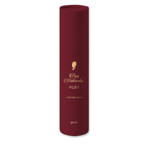 PANI WALEWSKA Perfumy Ruby - Energia i kobieca pewność siebie w nowoczesnym wydaniu. Kwiatowo-owocowa kompozycja o wyrazistym, soczystym charakterze, która podkreśla zmysłowość i dynamikę współczesnej kobiety. Zapach zamknięty w poręcznym flakonie, umieszczonym w eleganckiej tubie – idealnej do torebki, w podróży lub jako stylowy upominek.